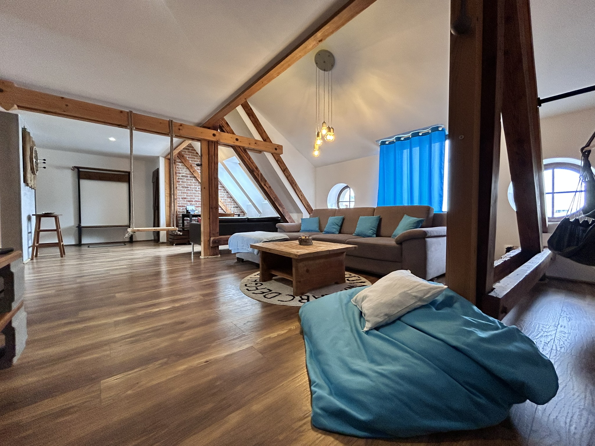 Hľadáte nehnuteľnosť, ktorá vyzerá ako z titulky magazínu o bývaní? Ponúkame vám exkluzívne na predaj tento dychberúci mezonetový loft v absolútnom centre Nitry. Byt prešiel v roku 2020 kompletnou, umelecky ladenou rekonštrukciou, ktorá dokonale prepojila pôvodný charakter tehlového domu s moderným dizajnom. S celkovou plochou 124,5 m² ide o bývanie pre niekoho, kto miluje otvorený priestor, vzdušnosť a materiály ako masívne drevo, kov a priznaná tehla.