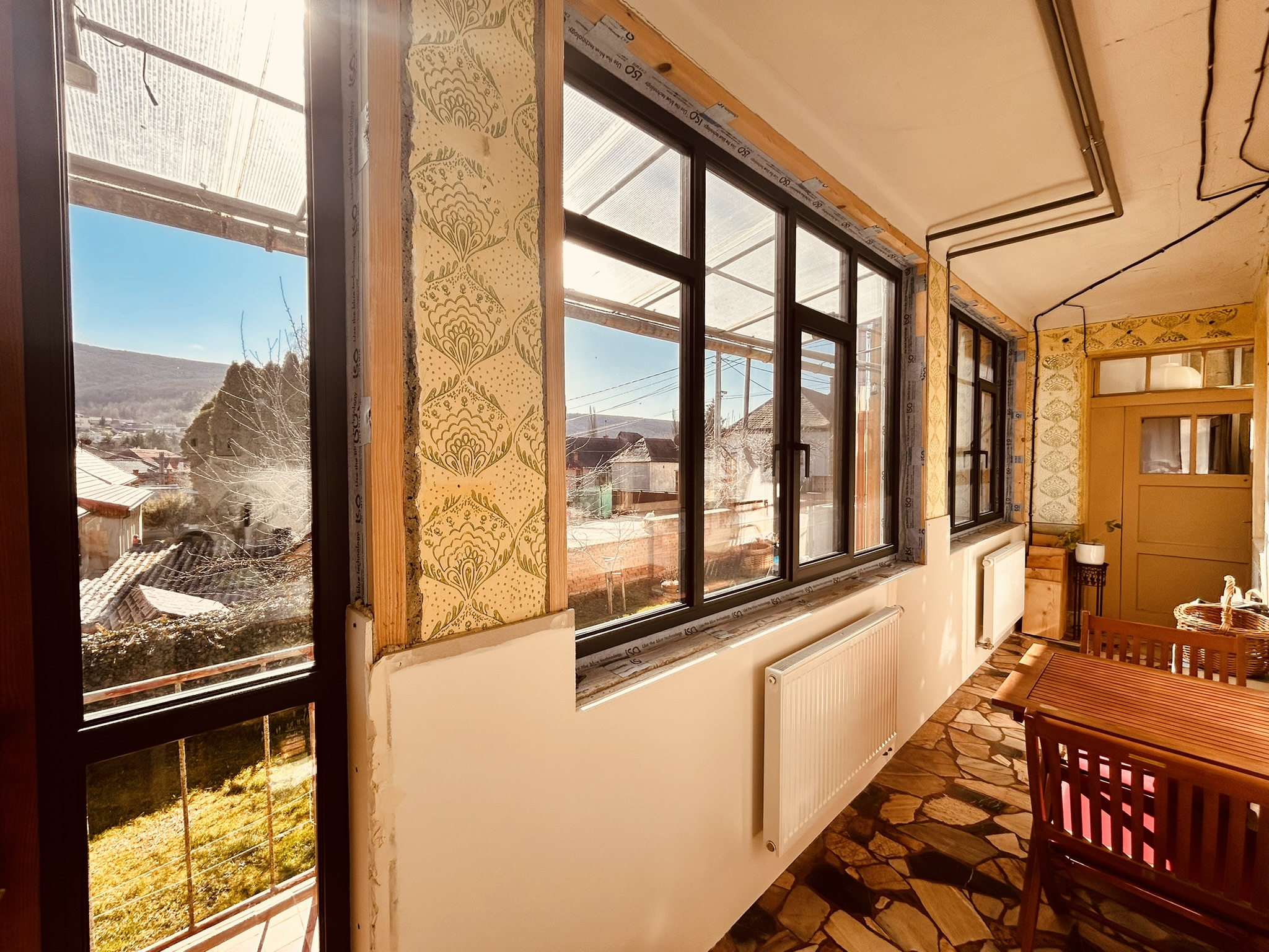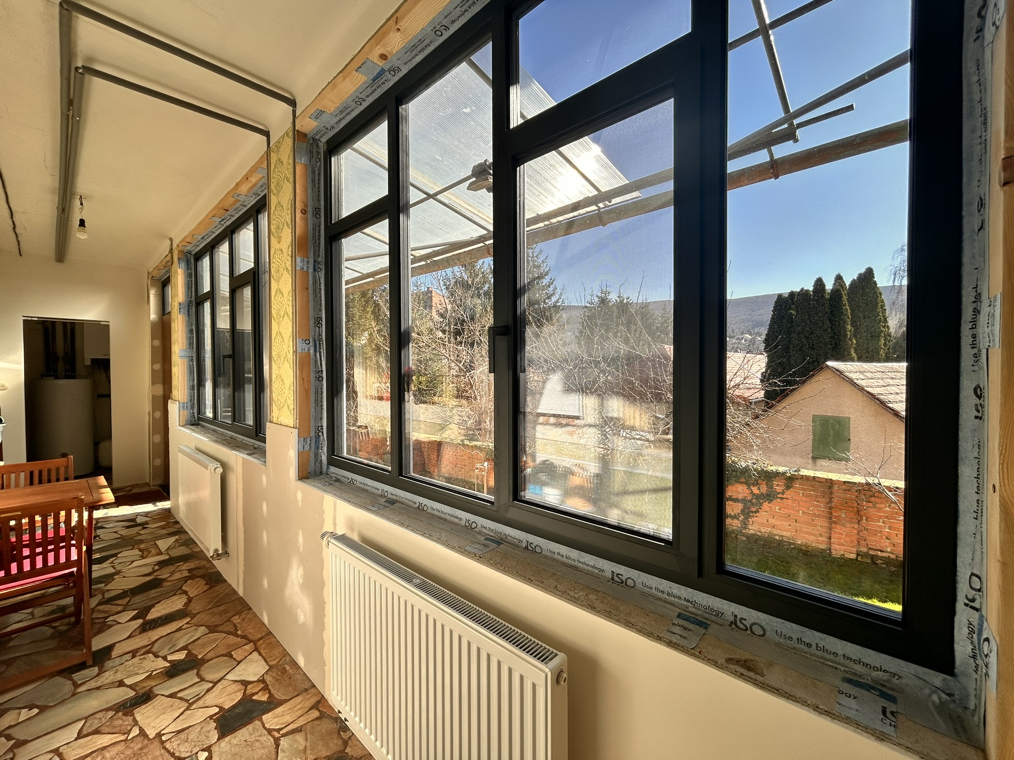 Charakter domu ešte viac podčiarkuje presklený gánok s novými hliníkovými oknami v antracitovej farbe, ktorý vytvára príjemný prechod medzi exteriérom a interiérom domu. Je to miesto, kde si viete predstaviť rannú kávu, pokojné večerné sedenie alebo zimnú záhradu s výhľadom do dvora.