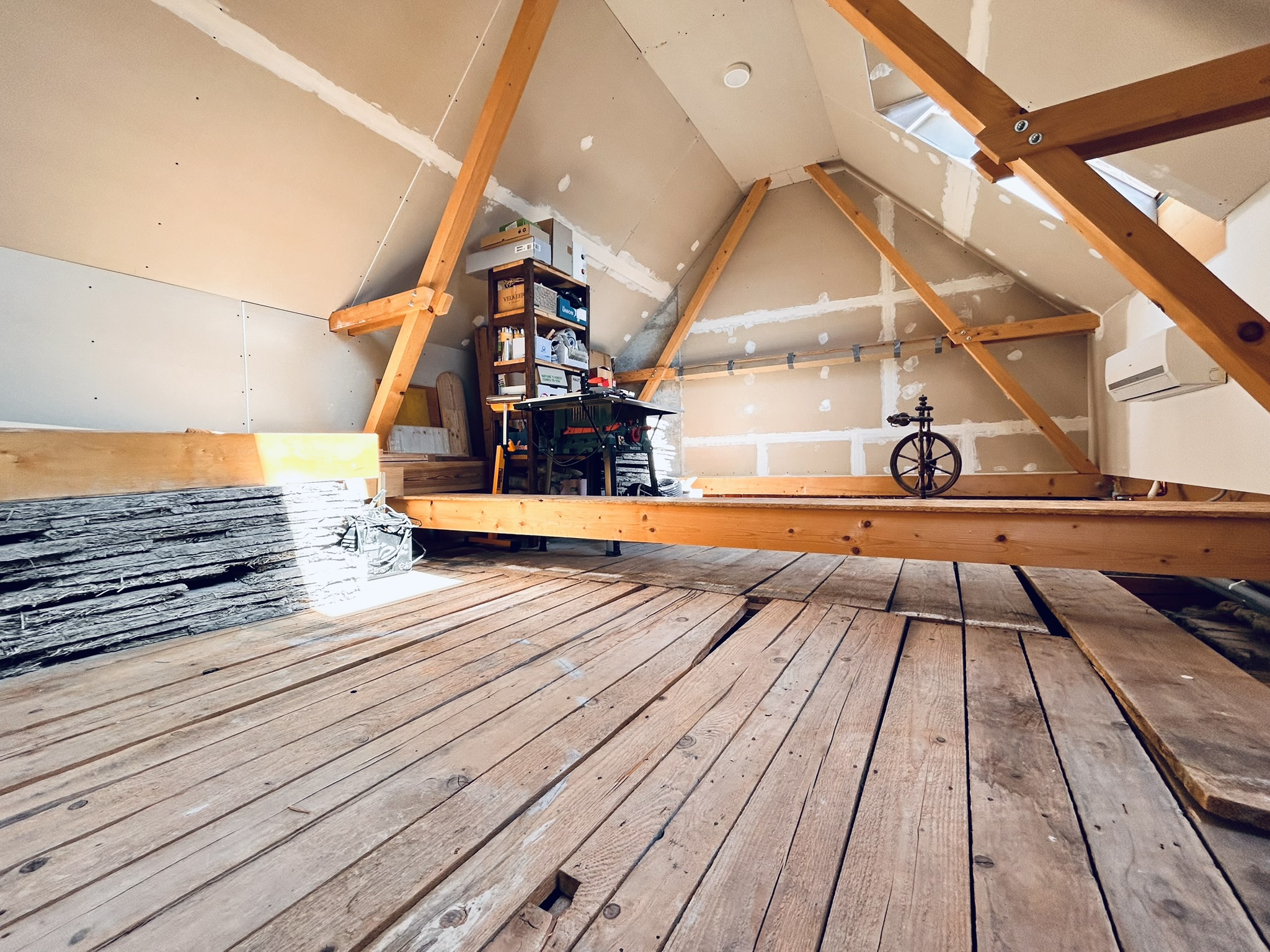 Podkrovie domu už prešlo výraznejšou úpravou a je rozdelené na dve časti.